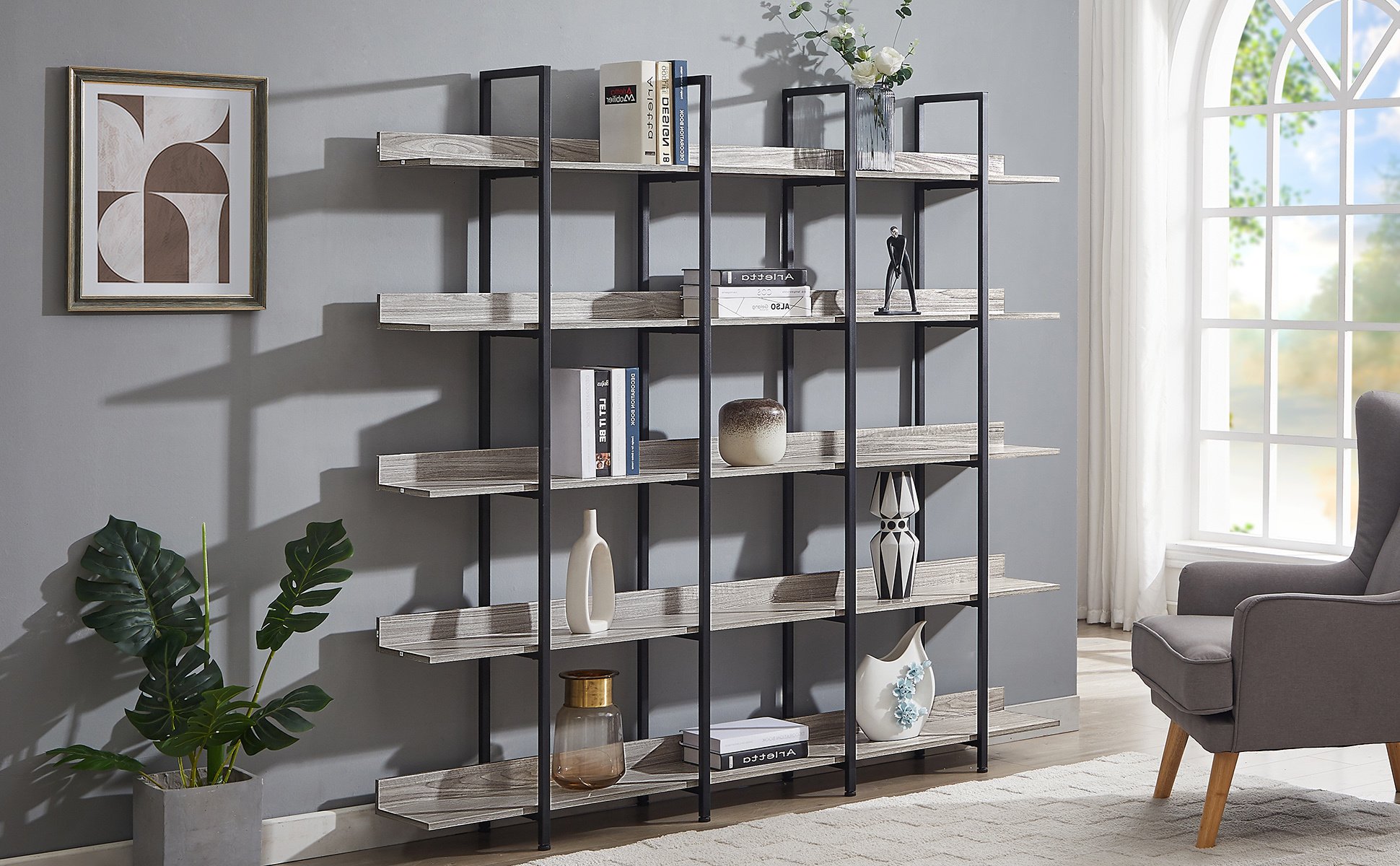 1.The open design of this bookcase combines the charm of both minimalist and vintage furniture styles. each designed with upright panels to stop things falling off and provides plenty of space to display and storage your books, decorations, plants, and other daily accessories.