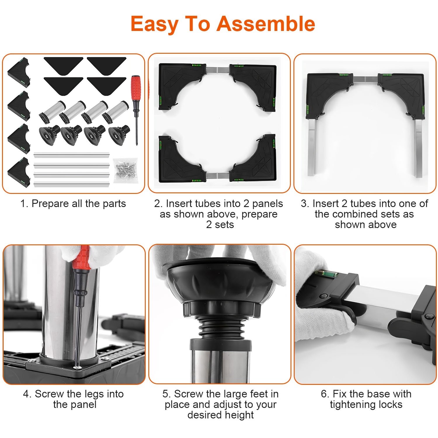 *Adjustable Height & Length & Width*:Our sturdy machine stand can be adjusted from 16.14-27.16in in length and width,and from 6.29-7.48in in height(Included the base). Widely adjustment allows you to flexibly reuse it to different furniture or appliances at home.
