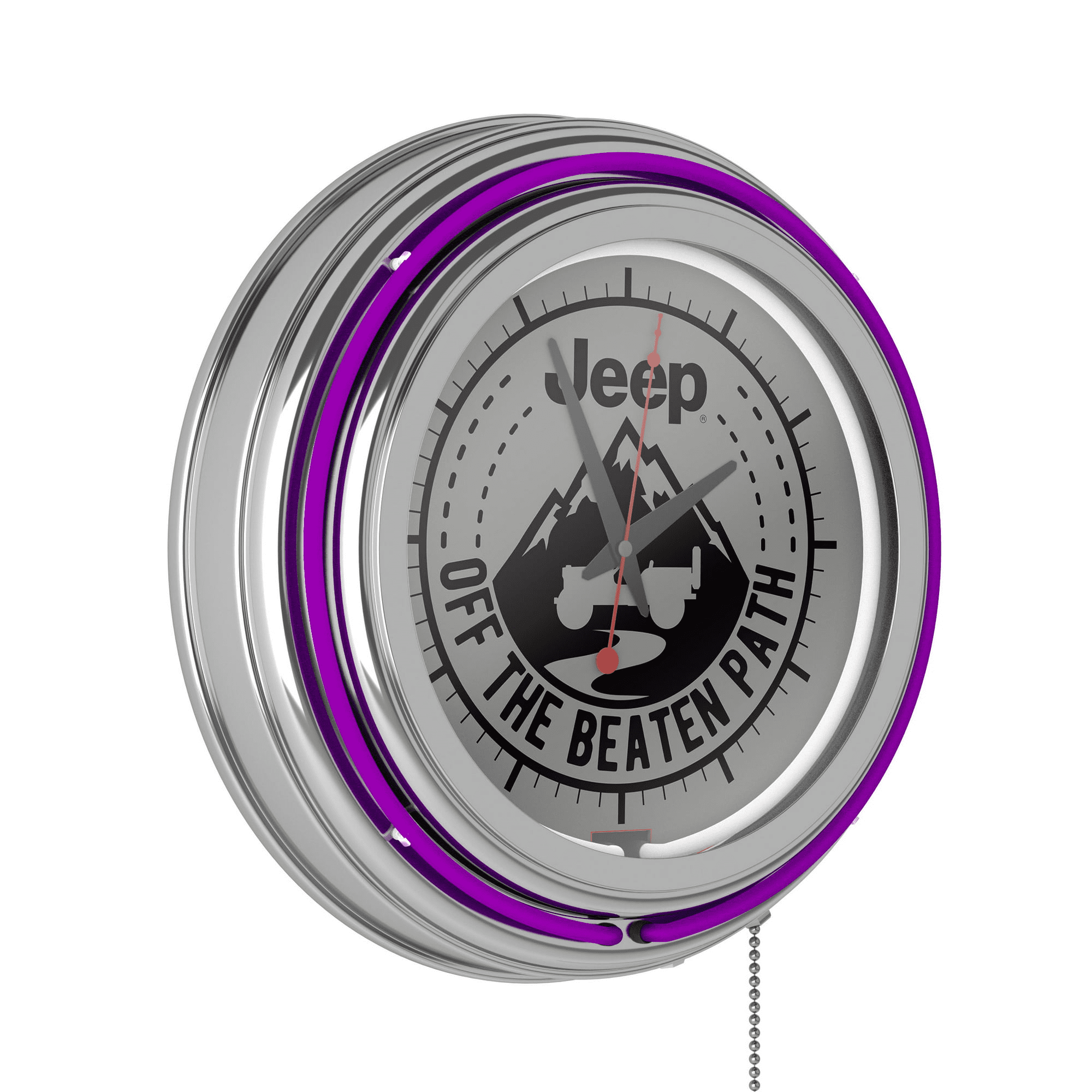 Home > Neon Wall Clock-Jeep Black Mountain Double Rung Analog Clock with Pull Chain-Pub, Garage, or Man Cave Accessories (Purple)