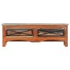 This retro-style TV cabinet, made of solid reclaimed wood, will make a timeless addition to your home. Reclaimed wood has the characteristics of different woods like teak wood, mango wood, acacia wood, etc, which is already aged, weathered and dried, so it doesn't shrink or bend. Every step of the process is carried out with the greatest care, be it polishing, painting and lacquering. It has 2 drawers for storing knick-knacks, multimedia appliances, gaming consoles and magazines.